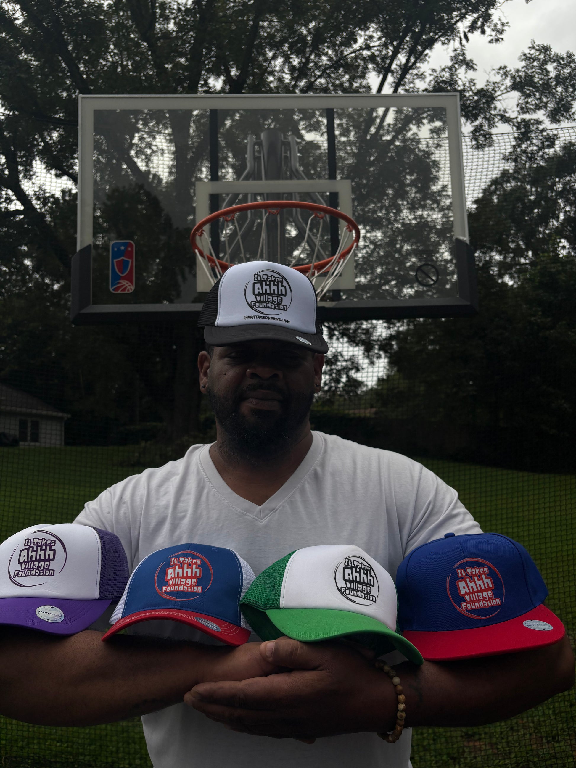 Top off your look with the official It Takes Ahhh Village Foundation trucker hat — a bold accessory that blends purpose with everyday style. Whether you're at a community event, running errands, or just staying cool, this hat lets the world know you’re part of something bigger.
